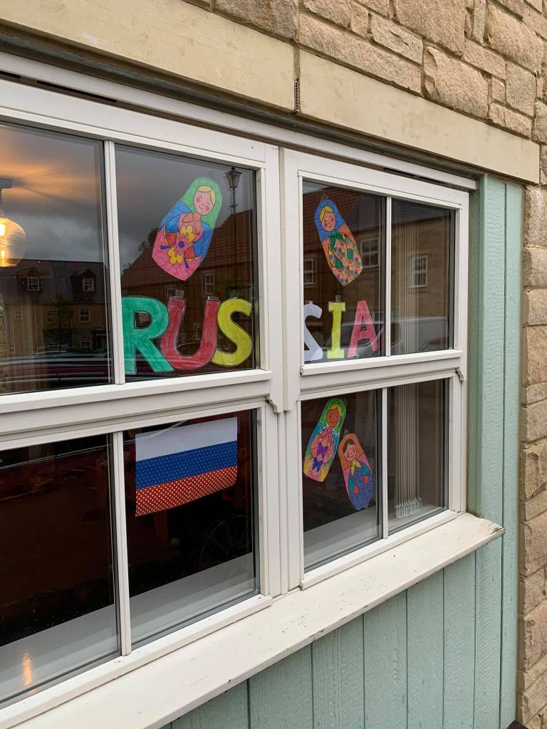 1. As advertised yesterday E took on RUSSIA making a lovely little window display so our poor suffering neighbours can see what she has been up to every time they pass by. She can point to where it is on the map and we just need to get her Aunty Nic to teach her all about the capital city (her specialist subject). The Russian dolls are great and definitely my favourite. As well as this she continues to really impress us with her #HomeSchooling effort – she seems to have decided she wants to finish everything in the home pack and who are we to hold her back? 🇷🇺