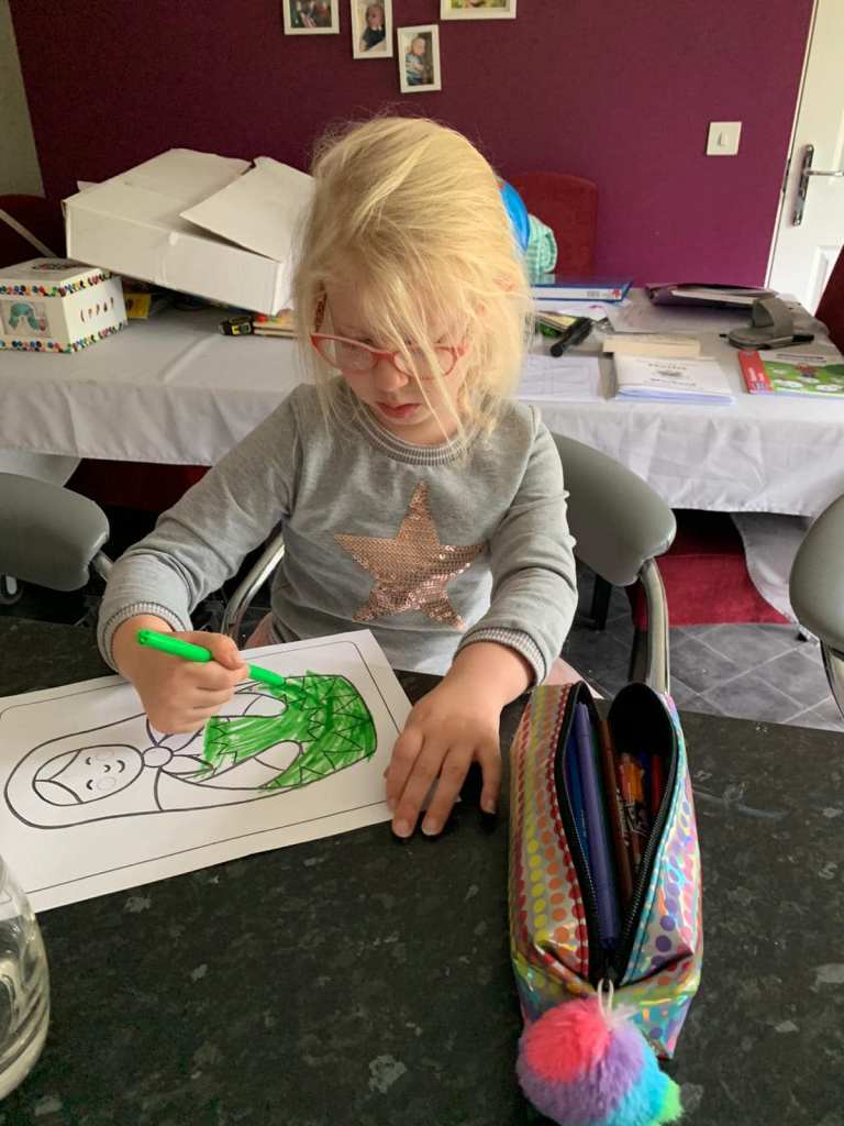 E screams at her Mammy because she’s asked her to put her glasses on. She then comes back with them on.