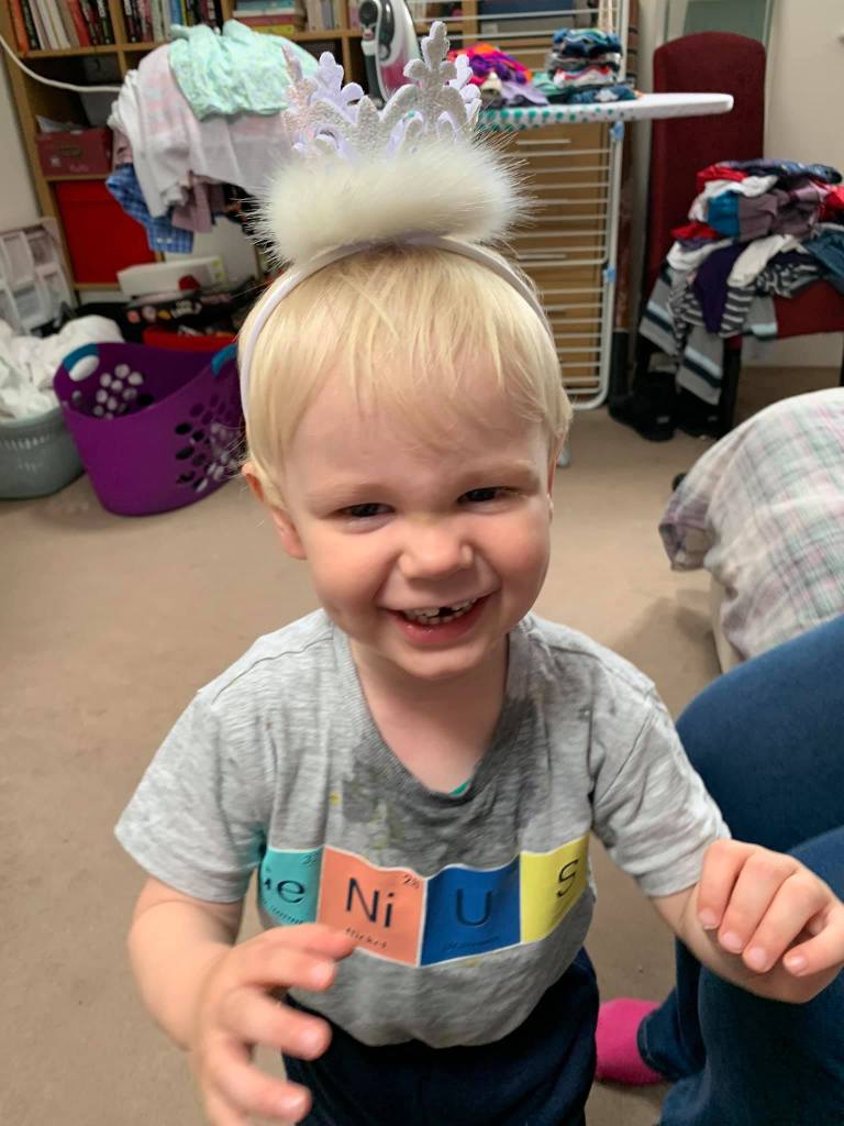 4. M has continued with his lifelong mission to seek out trouble, and if he can’t find any, to create his own. His favourite toy today, for no apparent reason, was a beautiful crown on a headband which he kept putting on his own head and then on top of everyone else’s, whilst finding it completely hysterical. You don’t really know how it feels until you have been crowned by your son live on a Zoom Partners Meeting! The biggest problem I find is that he has already mastered his ‘butter wouldn’t melt’ facial expressions making it incredibly difficult to tell him off. I do already feel sorry for his nursery teachers as they won’t know what they are dealing with until he gets dropped off on his first day! 🤴