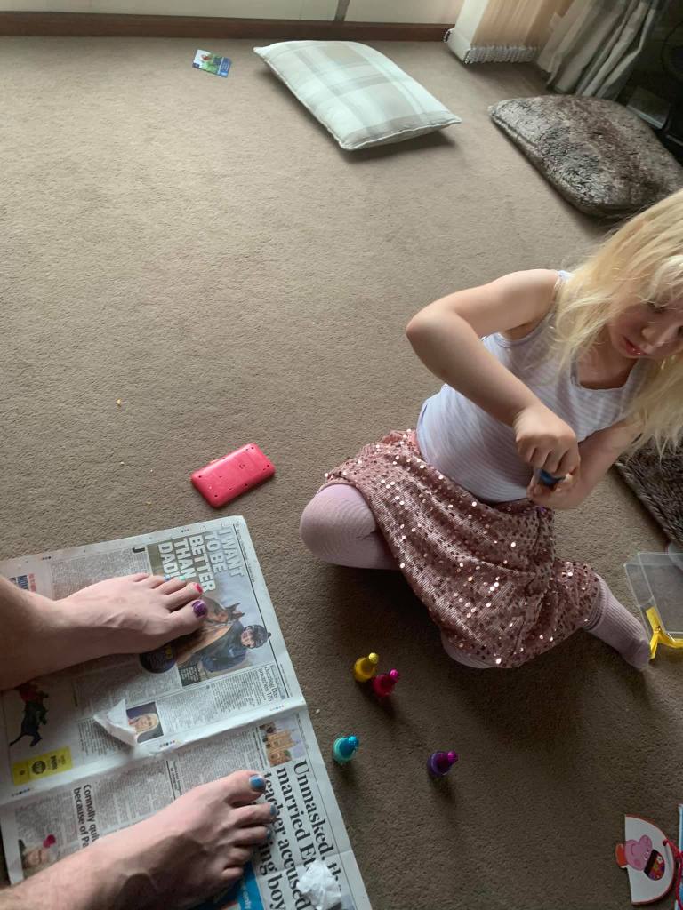 4. M was in super naughty form today, ripping the wallpaper with a pencil, trashing everything he could find and painting our couch with blackcurrant juice. He topped all of this however just as I was arriving home. I walked in to find Steph in tears and E sat in a state of shock as a clump of her hair was sitting on the carpet. The little bully had pulled out a bit of E’s hair and when she told him off, he grabbed a massive handful and just yanked. Now I know we are all in need of some hairdresser attention but I don’t think we will resort to M’s barber skills! 💇♂️