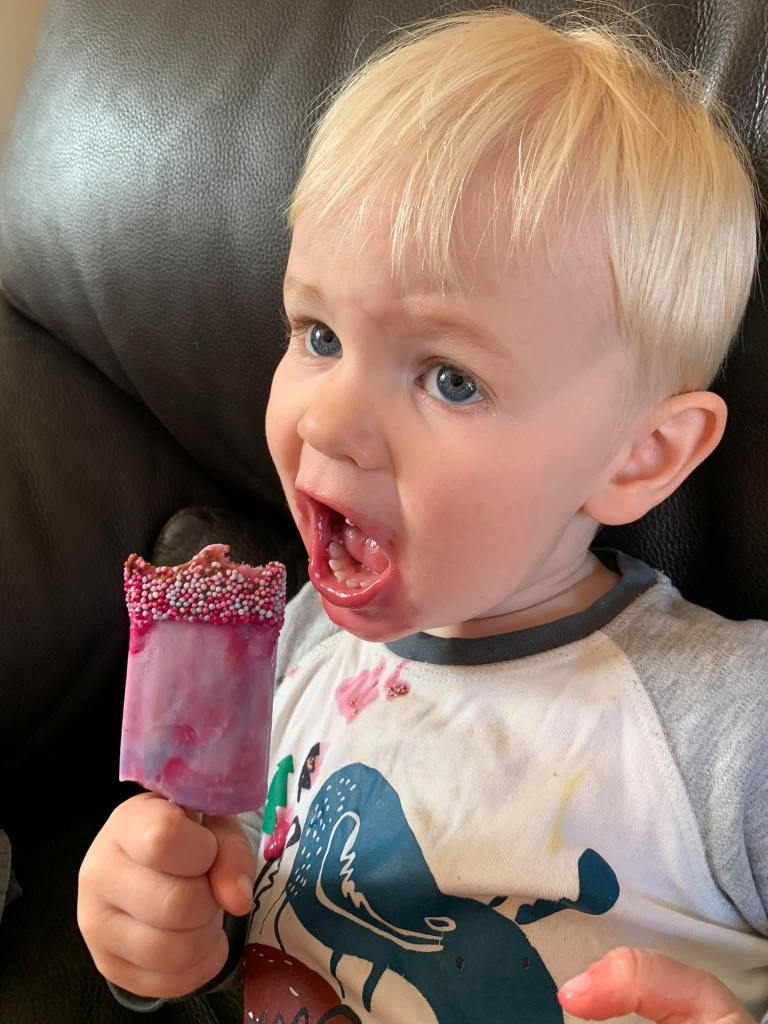 4. The only thing better than making jelly is eating it of course. And so for pudding tonight the kids got to scoff the good stuff. M has developed a new found independence of eating where any assistance is immediately rebuffed usually with some foodstuff thrown at you. Jelly was a new challenge but one he took to with aplomb wobbling the spoon all the way to his mouth. He was bare legged due to a previous nappy incident and I did enjoy seeing his face when a bit of cold jelly fell onto his leg and he just didn’t know what to do! He did what we would all do – scooped it up into his hand and smeared it into his hair! 🍧